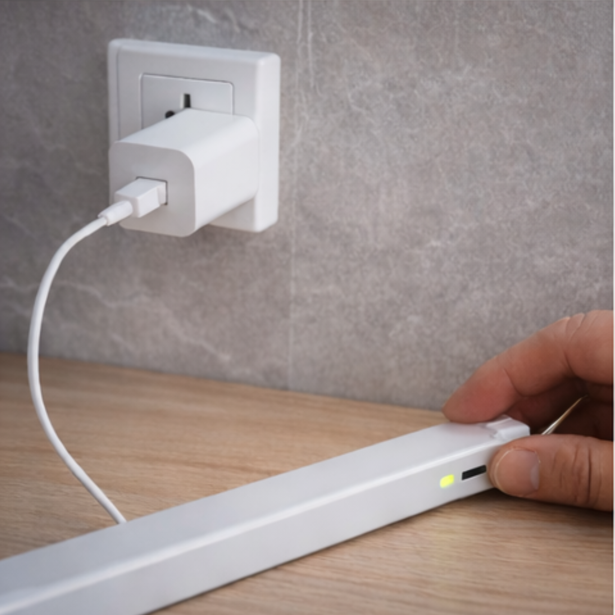 La lámpara cuenta con una batería recargable de alta capacidad y se carga fácilmente mediante USB con el cable incluido. Una carga completa ofrece una larga duración, ideal para uso diario en armarios, cocinas, pasillos y más.